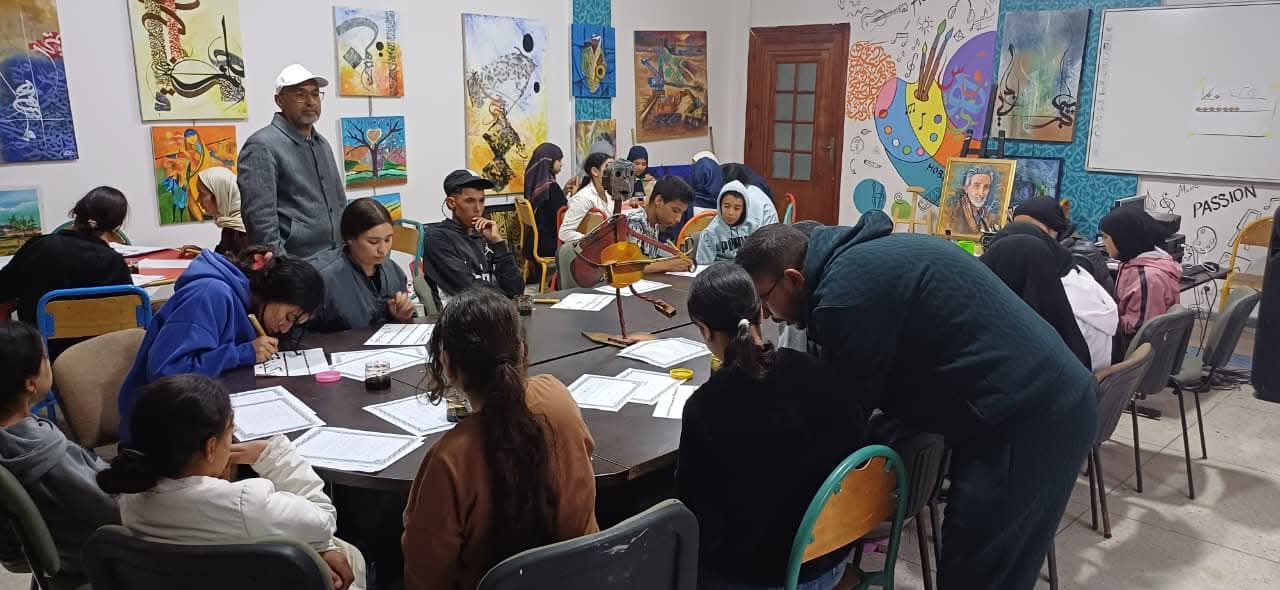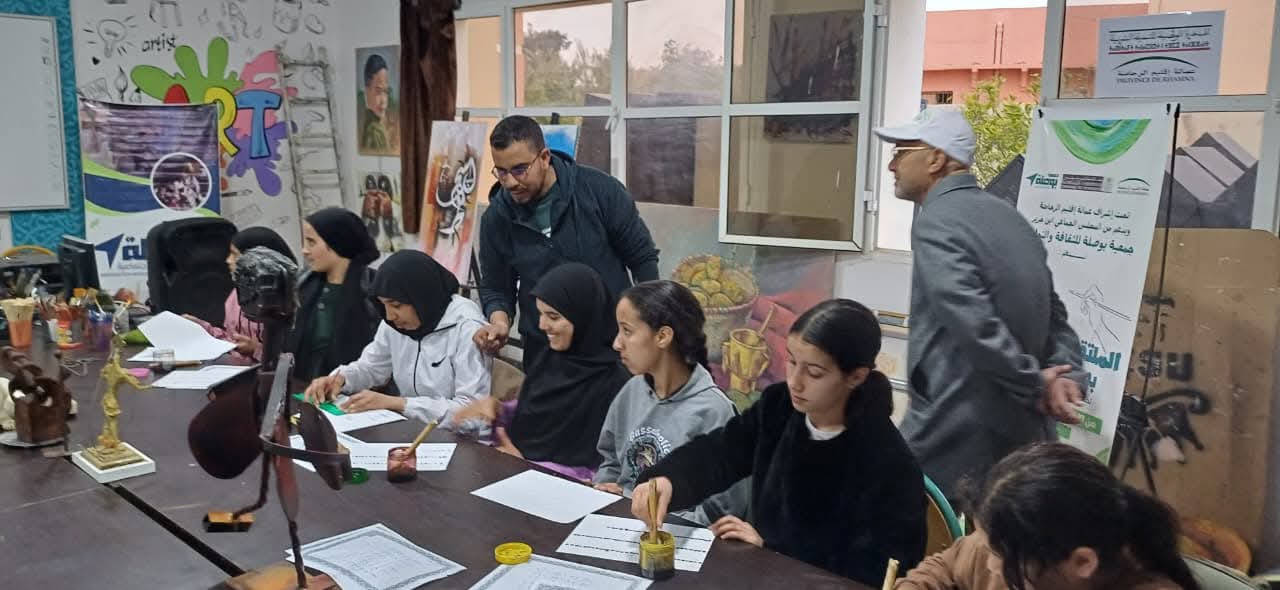 تحت إشراف اللجنة الإقليمية للتنمية البشرية بإقليم الرحامنة، وفي إطار تنفيذ الشراكة الخاصة بالعرض الوطني لتنشيط مؤسسات الشباب برسم الموسم 2025–2026، واصلت جمعية بوصلة للثقافة والتواصل، بشراكة مع المديرية الإقليمية لوزارة الشباب والثقافة والتواصل بالرحامنة، وبتعاون مع دار الطالب والطالبة ابن جرير، وبدعم من جماعة ابن جرير، تنظيم ورشة تكوينية في أساسيات الخط العربي، وذلك يوم الخميس 26 فبراير 2026، تحت إشراف الفنان الخطاط سعيد الزكراوي. وتأتي هذه المحطة امتداداً لسلسلة الورشات السابقة التي استفاد منها تلاميذ وتلميذات المؤسسة، في إطار برنامج فني متدرج يهدف إلى ترسيخ القواعد الأساسية للخط العربي وتطوير المهارات التقنية للمشاركين بشكل مستمر. وقد شكلت الورشة فرصة لتعزيز المكتسبات السابقة والبناء عليها من خلال تمارين تطبيقية أكثر دقة وتركيزاً. وخلال هذه الحصة، تم الاشتغال على تحسين تناسق الحروف وضبط المسافات واحترام النسب المعتمدة في الكتابة، مع تقديم توجيهات فردية وتصحيحات عملية لكل مستفيد، بما يضمن تتبعاً بيداغوجياً فعالاً. كما تم التذكير بأهمية الالتزام بالقواعد الأساسية لمسك القصبة وضبط زاوية الميلان لتحقيق جمالية الخط وانسجامه. وقد عكست أجواء الورشة روح الجدية والانخراط الإيجابي، حيث لوحظ تطور ملحوظ في مستوى عدد من المشاركين، ما يؤكد أهمية الاستمرارية في التكوين الفني وأثرها في صقل المواهب الناشئة. واختُتم النشاط بالتأكيد على مواصلة هذه السلسلة من الورشات دعماً للإبداع وتعزيزاً للحضور الثقافي داخل مؤسسات الرعاية الاجتماعية بالإقليم.