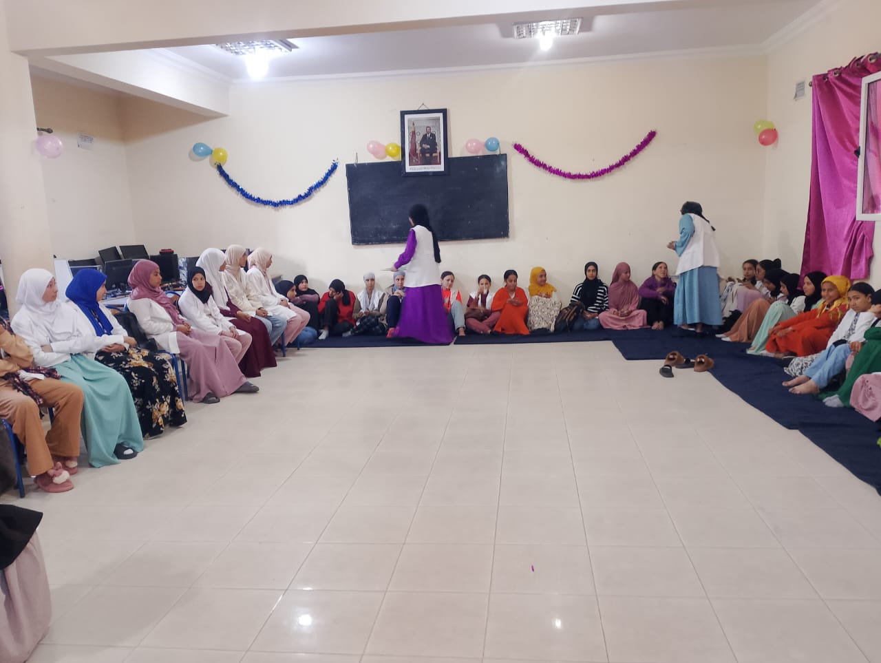 في إطار مشروع دعم التفتح لدى الشباب بدار الطالب والطالبة صخور الرحامنة، وتحت إشراف اللجنة الإقليمية للتنمية البشرية بإقليم الرحامنة، وبشراكة مع جمعية بوصلة للأعمال الاجتماعية بابن جرير . بمناسبة رمضان المبارك الأعظم ولياليه المقدسة احتفل مستفيدات دارالطالب والطالبة صخور الرحامنة بهذه الليلة العظيمة ،يوم الجمعة 13 مارس 2026 حيث قمن بعدة أنشطة من رسم ونقش بالحناء وأناشيد دينية وكان ذلك بحضور أعضاء الجمعية وقد ثم أخذ صور جماعية ومشاركة فرحتهن مع بعضهن البعض .