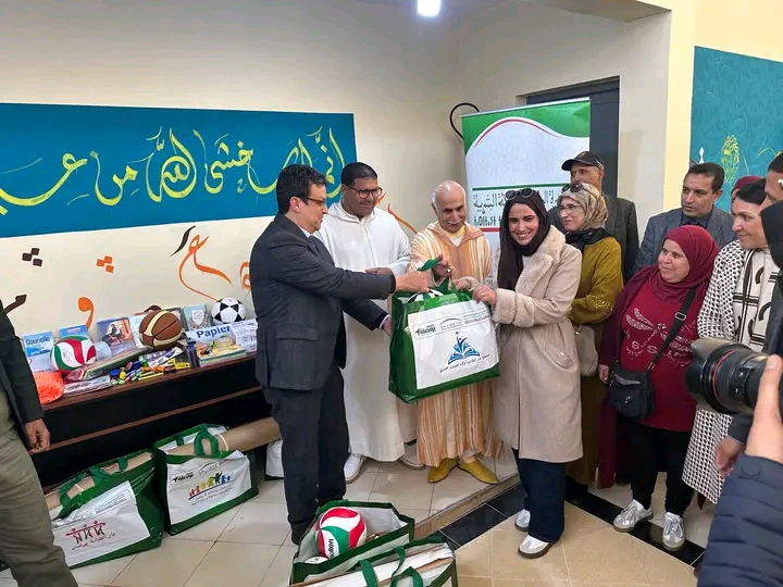 دار الطالب أولاد حسون حمري تتسلم معدات لتنشيط الأندية التربوية . بحضور السيد عامل عمالة إقليم الرحامنة،جرى تسليم مجموعة من المعدات والتجهيزات لفائدة دار الطالب اولاد حسون حمري،وذلك في إطار برنامج دعم التفتح لدى الشباب بدور الطالب والطالبة بإقليم الرحامنة، المنجز تحت إشراف اللجنة الإقليمية للتنمية البشرية. وتندرج هذه العملية ضمن الجهود الرامية إلى دعم الأنشطة الموازية داخل مؤسسات الرعاية الاجتماعية، حيث أشرفت جمعية بوصلة للثقافة والتواصل على توفير هذه التجهيزات التي تستهدف تنشيط عدد من الأندية التربوية بالمؤسسة. وشملت المعدات والتجهيزات الممنوحة أدوات ووسائل خاصة بتنشيط النادي الثقافي والفني، إلى جانب تجهيزات موجهة لتفعيل أنشطة النادي الرياضي، إضافة إلى وسائل تدعم برامج النادي البيئي، بما يتيح للتلاميذ فضاءات ملائمة للتعبير عن مواهبهم وتنمية قدراتهم الإبداعية والرياضية والبيئية. كما يهدف هذا الدعم إلى تعزيز الأنشطة التربوية داخل دار الطالب، وتشجيع التلاميذ على الانخراط في الأندية المدرسية التي تساهم في تنمية شخصيتهم وصقل مهاراتهم، إلى جانب دعم مسارهم الدراسي في ظروف ملائمة. كما يهدف هذا الدعم إلى تعزيز الأنشطة التربوية داخل دار الطالب، وتشجيع التلاميذ على الانخراط في الأندية المدرسية التي تساهم في تنمية شخصيتهم وصقل مهاراتهم، إلى جانب دعم مسارهم الدراسي في ظروف ملائمة.