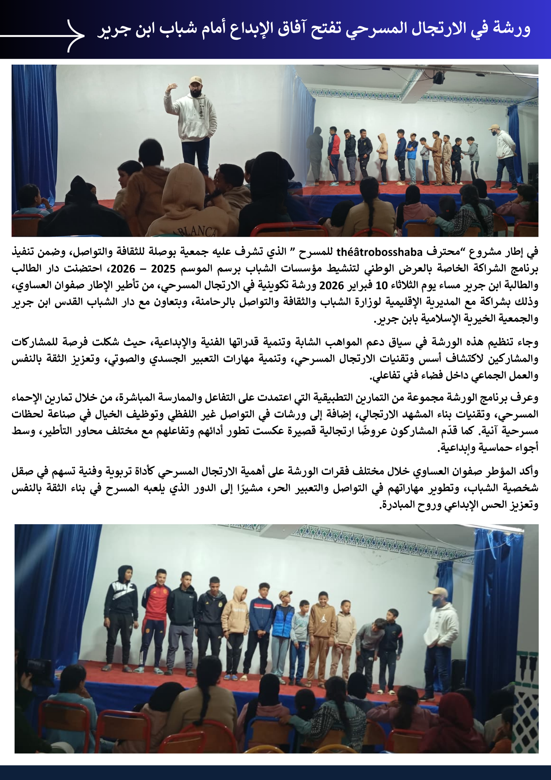 ورشة في الارتجال المسرحي تفتح آفاق الإبداع أمام شباب ابن جرير