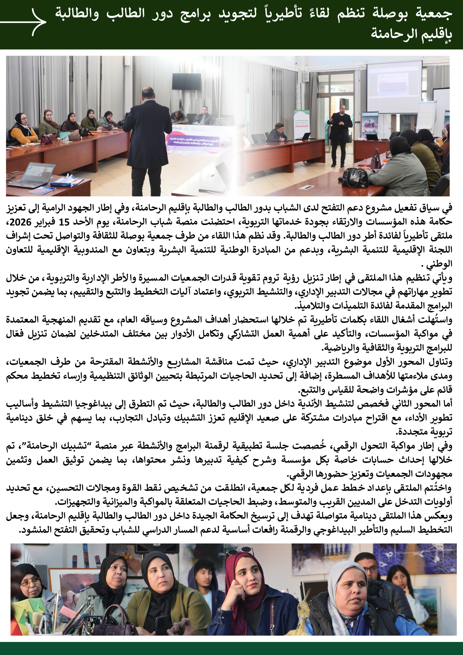 جمعية بوصلة تنظم لقاءً تأطيرياً لتجويد برامج دور الطالب والطالبة بإقليم الرحامنة
