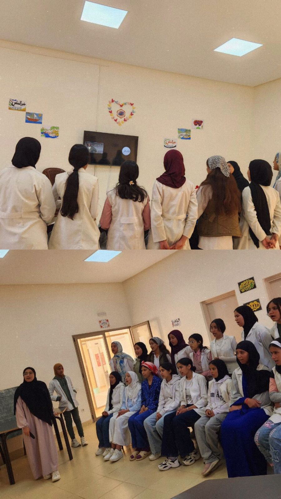 في إطار مشروع دعم التفتح لدى الشباب بدار الطالبة سيدي بوبكر، وتحت إشراف اللجنة الإقليمية للتنمية البشرية بإقليم الرحامنة، وبشراكة مع جمعية بوصلة للأعمال الاجتماعيةسهرت جمعية تدبير دار الطالبة سيدي بوبكر على اعطاء اهمية بالغة للعمل على تفعيل النوادي خاصتا بعد ما جاء في اتفاقية الشراكة. التي سطرت مضامينها تحت عنوان برنامج دعم التفتح لدى شباب دار الطالبة والطالبة حيت نص بالاساس البرنامج على اعطاء اهمية للنوادي والعمل على تنزيلها وتفعيلها على ارض الواقع الامر الدي سعت له مؤطرة النادي الفني حيت ركزت على تنويع الانشطة الفنية التي تقوم بتدريب المستفيدات عليها ضمن النادي الفني حيت ركزت هده الحصة على تدريب المستفيدات على اداء كورال (جاذك الغيث) ثم قامت بتدريبهم على القاء كلماته دون موسيقي لتمكن من نطق الكلمات بشكل صحيح مع احترام ضوابط الايقاع وافساح المجال لباقي المشاركات من اداء الكورال بسلاسة وبتناغم وتفاهم واخيرا اداء الكورال ميرارا وتكرارا مع المسيقى لضمان ادائه بشكل سليم وبسلاسة ودون اخطاء في النطق كما ركزت على احترام اللحن وطرق الاداء السابقة وذلك بالاستئناس بمقاطع فرق ذات تكوين موسيقي وخبرة في المجال _1775052550.jpeg)