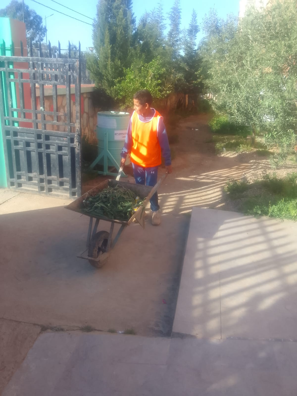 في إطار مواصلة أنشطته التحسيسية والبيئية، يواصل النادي البيئي لدار الطالب بوشان تنزيل مجموعة من المبادرات الهادفة إلى تحسين الفضاء الداخلي للمؤسسة. وفي هذا السياق، تم يوم 01 أبريل 2026 تنظيم نشاط بيئي تمثل في إصلاح وتهيئة أحواض الشجيرات المتواجدة بالمؤسسة. وقد عرف هذا النشاط مشاركة متميزة من طرف المستفيدين، تحت إشراف مؤطر النادي، حيث شملت الأشغال تنظيف الأحواض، وإزالة الأعشاب الضارة، وإعادة تهيئة التربة، إلى جانب العناية بالشجيرات من خلال السقي. وساهمت هذه المبادرة في ترسيخ قيم الحفاظ على البيئة وتعزيز روح العمل الجماعي لدى المستفيدين، كما أضفت لمسة جمالية على فضاء المؤسسة، مما ينعكس إيجاباً على محيطهم التربوي. ويأتي هذا النشاط ضمن برنامج متكامل يسعى النادي البيئي من خلاله إلى نشر الوعي البيئي وتشجيع السلوكيات الإيجابية المرتبطة بحماية المحيط، وذلك في إطار أنشطة دعم التفتح لدى مستفيدي دار الطالب بوشان، تحت إشراف اللجنة الإقليمية للتنمية البشرية بإقليم الرحامنة، وبشراكة مع جمعية بوصلة للثقافة والتواصل، وبالتنظيم من الجمعية الخيرية الإسلامية لدار الطالب بوشان. .