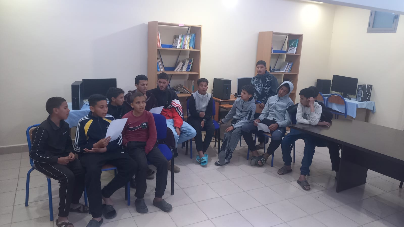 في سياق تفعيل الأنشطة الإبداعية بدار الطالب سيدي بوعثمان، وضمن مشروع "دعم التفتح" الرامي إلى تنمية القدرات الذاتية للتلاميذ، نظم نادي الركح والإنشاد حصة تدريبية نوعية حول "فن الإلقاء والتعبير الشفهي". الورشة التي أشرف على تأطيرها وتسييرها المؤطر إبراهيم طاها، عرفت مشاركة واسعة وتفاعلاً لافتاً من قبل المستفيدين. تأتي هذه الحصة التدريبية كمحطة نضج وتطبيق فعلي، بعد أن اجتاز التلاميذ بنجاح حصتي "اكتشاف المواهب" و"تمارين الصوت والتنفس". وبفضل التوجيهات الدقيقة للمؤطر إبراهيم طاها، استطاع المشاركون الربط بين التقنيات التنفسية التي اكتسبوها سابقاً وبين مهارات الوقوف أمام الجمهور، مما أضفى طابعاً من الاحترافية على أدائهم. ركزت الورشة على تزويد التلاميذ بأدوات التواصل الفعال، وشملت كيفية بناء الثقة بالنفس والتحكم في لغة الجسد لتعزيز الرسالة الشفهية وكذلك تدريبات عملية على مخارج الحروف ونبرات الصوت وتوظيفها للإقناع والتأثير و تقنيات حديثة لكسر حاجز الخوف والرهبة من الحديث أمام الآخرين. اختتمت الورشة بكلمة تشجيعية للمشاركين، أكدت على أن الإبداع ليس له حدود وأن الممارسة المستمرة هي مفتاح التميز. وقد أبان تلاميذ دار الطالب بسيدي بوعثمان عن علو كعبهم، واعدين بمزيد من التألق في القادم من أنشطة نادي الركح والإنشاد. نادي الركح والإنشاد – دار الطالب سيدي بوعثمان حرر في: 02 أبريل 202