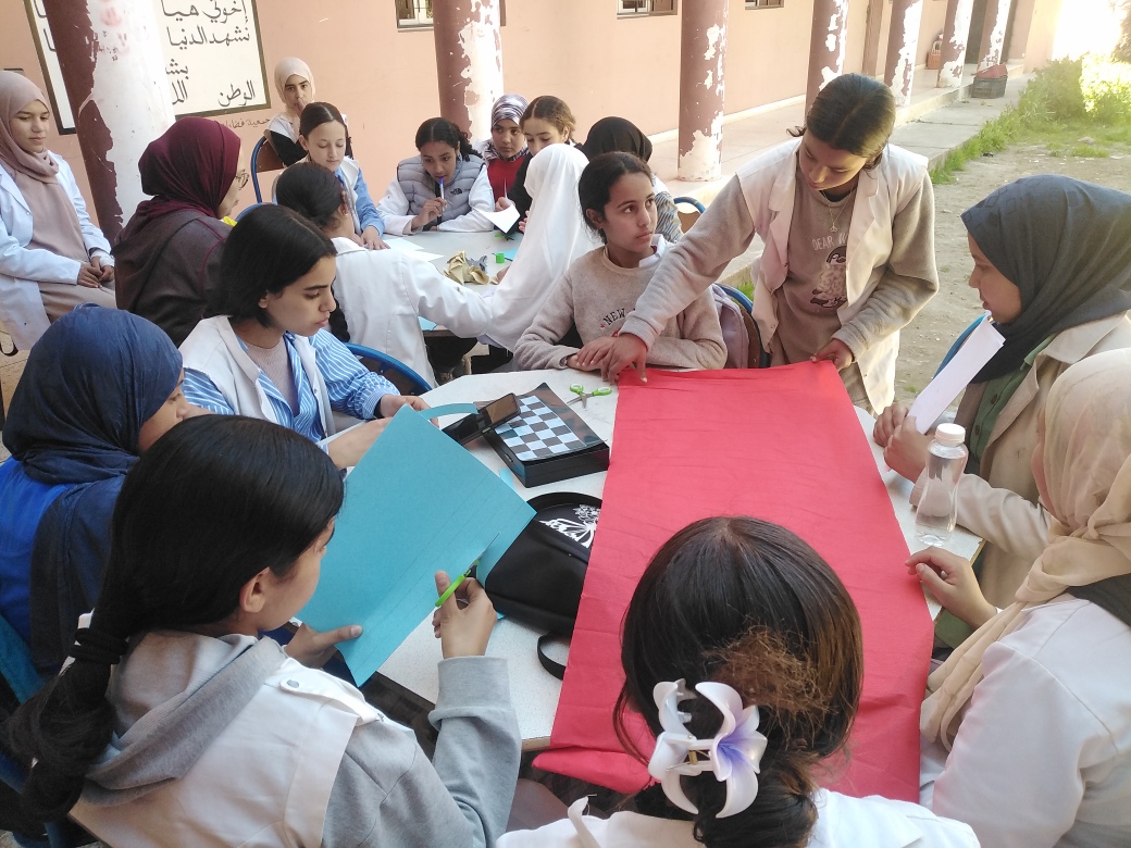 في إطار تنزيل مشروع دعم التفتح لدى الشباب بدار الطالب والطالبة صخور الرحامنة، وتحت إشراف اللجنة الإقليمية للتنمية البشرية بإقليم الرحامنة، وبشراكة مع جمعية بوصلة للأعمال الاجتماعية بابن جرير، يواصل نادي التنمية الذاتية والبشرية جهوده الرامية إلى تنمية قدرات المستفيدين والمستفيدات، عبر تنظيم أنشطة تربوية وتكوينية متنوعة. وفي هذا السياق، نظم النادي يوم الخميس 02 أبريل 2026 ورشة خاصة بالأعمال اليدوية، أشرفت على تأطيرها السيدة فاطمة العفير، حيث شكلت هذه المبادرة فرصة مميزة للمستفيدات لاكتشاف مهاراتهن الإبداعية وتطوير قدراتهن الفنية. وقد تميزت الورشة بأجواء تفاعلية وحماسية، حيث انخرطت المشاركات في إنجاز أعمال يدوية متنوعة، عكست حسهن الفني وروح الابتكار لديهن. كما ساهمت هذه الورشة في تعزيز الثقة بالنفس لدى المستفيدات، وتشجيعهن على التعبير عن ذواتهن من خلال الإبداع. وتندرج هذه المبادرة ضمن سلسلة من الأنشطة الهادفة إلى صقل مواهب الفتيات، وإبراز قدراتهن الكامنة، بما يسهم في تحقيق التفتح الشخصي والاجتماعي، ويعزز دور دار الطالب والطالبة كفضاء حاضن للإبداع والتنمية.