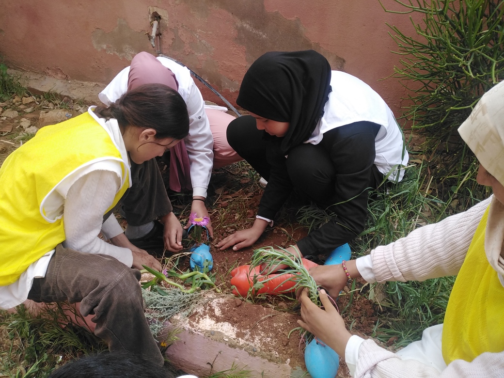 في إطار مشروع دعم التفتح لدى الشباب بدار الطالب والطالبة صخور الرحامنة، وتحت إشراف اللجنة الإقليمية للتنمية البشرية بإقليم الرحامنة، وبشراكة مع جمعية بوصلة للأعمال الاجتماعية بابن جرير . نظم نادي الطفولة المبكرة والبيئة والسلامة الصحية بدار الطالب والطالبة صخور الرحامنة يوم 09 أبريل 2026 ورشة تحسيسية حول البيئة بحيث ثم تنظيف المحيط الخارجي للمؤسسة ، شملت جمع النفايات، وإزالة الاعشاب الضارة وغرس بعض النباتات والإزهار لتزيين فضاء المؤسسة ان هذه الأندية البيئية تهدف بشكل أساسي على تنمية روح المسؤولية لدى المستفيدين والمستفيدات والمجتمع، و تعزيز الوعي بأهمية الحفاظ على البيئة والنظافة. حيث لقيت هذه الورشة الرياضية استحسان المستفيدين و المستفيدات والاستئناس بها والخروج من الروتين اليومي الدراسي .