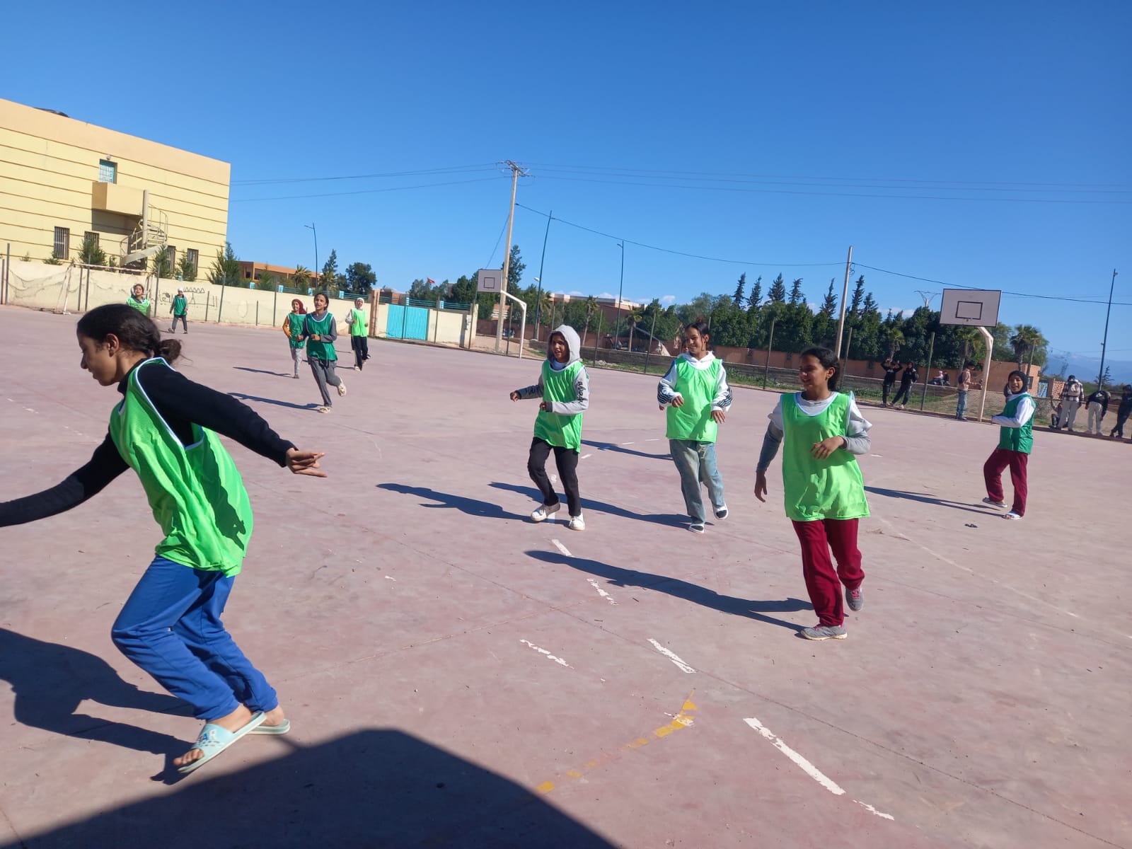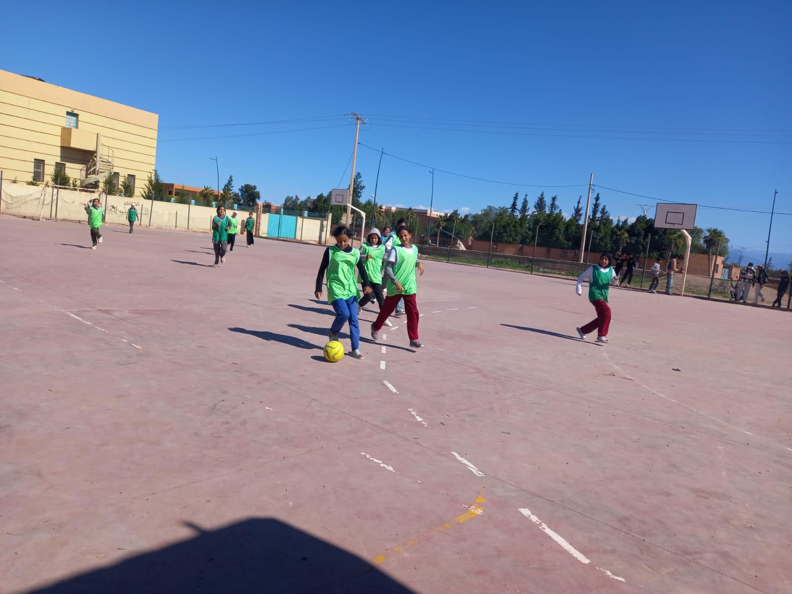 في إطار تنزيل أنشطة مشروع دعم التفتح لدى الشباب بدار الطالبة الطلوح، وتحت إشراف اللجنة الإقليمية للتنمية البشرية بإقليم الرحامنة، نظم النادي الرياضي بالمؤسسة، بشراكة مع جمعية بوصلة للثقافة والتواصل، حصة تدريبية في كرة القدم لفائدة تلميذات الدار، وذلك في أجواء مفعمة بالحماس والطاقة الإيجابية. شهدت هذه الحصة استمرارية تدريبات كرة القدم بوتيرة منتظمة، حيث ركزت على تطوير المهارات الفنية والتكتيكية للتلميذات. انطلقت الجلسة بتمارين إحماء ديناميكية، تلتها تمارين تقنية متخصصة شملت التحكم في الكرة، التمريرات الدقيقة بمختلف المسافات، التسديد على المرمى، والتحرك بدون كرة. بعد ذلك، تم تنظيم مباريات مصغرة تنافسية سمحت للتلميذات بتطبيق ما تعلمنه في سياق لعب حقيقي، مع الحرص على احترام قواعد اللعب والروح الرياضية. سادت الحصة أجواء مفعمة بالحماس والتشجيع المتبادل، حيث أبدت التلميذات تفاعلاً كبيراً وروحاً جماعية عالية. شكلت هذه الحصة التدريبية فرصة قيمة لتعزيز اللياقة البدنية، صقل المهارات الكروية، وترسيخ قيم العمل الجماعي، الإصرار والمنافسة الشريفة لدى التلميذات. كما ساهمت في إضفاء لمسة من المتعة والحيوية داخل الفضاء التربوي. وفي ختام الحصة، عبرت التلميذات عن سعادتهن الكبيرة وحماسهن الشديد بهذه التدريبات المستمرة، مؤكدات رغبتهن في مواصلة الجلسات الرياضية بانتظام لتطوير قدراتهن في كرة القدم._1775824278.jpeg)
