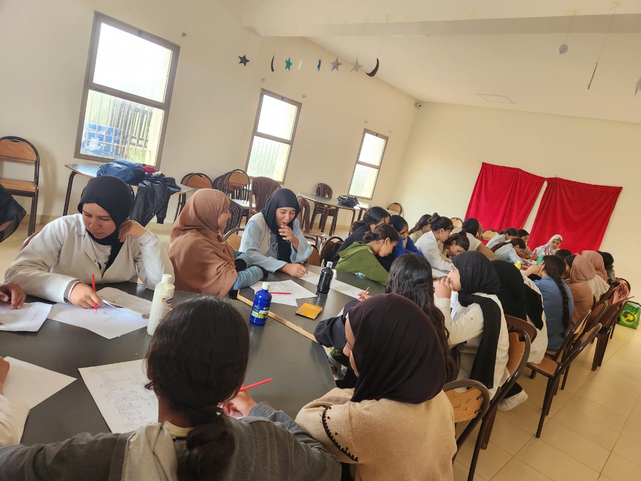 في إطار تنزيل أنشطة مشروع دعم التفتح لدى الشباب بدار الطالبة سيدي بوبكر، وتحت إشراف اللجنة الإقليمية للتنمية البشرية بإقليم الرحامنة، وبشراكة مع جمعية بوصلة للأعمال الاجتماعية، تعمل المؤسسة على تنويع أنشطتها التربوية داخل أسوارها، من خلال تفعيل مجموعة من النوادي وفق ما تنص عليه اتفاقية الشراكة. وفي هذا السياق، وبعد تفعيل هذه النوادي، حرصت إدارة المؤسسة على برمجة ورشات متنوعة تستجيب لاهتمامات المستفيدات، وتساهم في تنمية مهاراتهن وصقل مواهبهن في مجالات متعددة. ومن بين هذه المبادرات، نظّم النادي الثقافي ورشة في فن الخط العربي والخط الكوفي، أشرفت عليها مؤطرة النادي، إيمانًا منها بأهمية هذه المهارة في المسار الدراسي للمستفيدات، حيث يُعد تحسين الخط العربي عنصرًا أساسياً في إعداد البحوث والعروض المدرسية، وكذا في كتابة العناوين وتنظيم الدفاتر بشكل جمالي ومنهجي. كما شكلت هذه الورشة مناسبة لاكتشاف جماليات الخط العربي والتعرف على أنواعه، مع تشجيع المستفيدات على تنمية حسهن الإبداعي وتحفيز فضولهن الفني تجاه هذا التراث الأصيل. وقد مرت هذه الحصة في أجواء مفعمة بالحماس والتفاعل، حيث جمعت بين الاستفادة والمتعة، وشكلت في الآن ذاته فرصة للترفيه عن النفس وتعزيز روح الإبداع لدى المستفيدات.