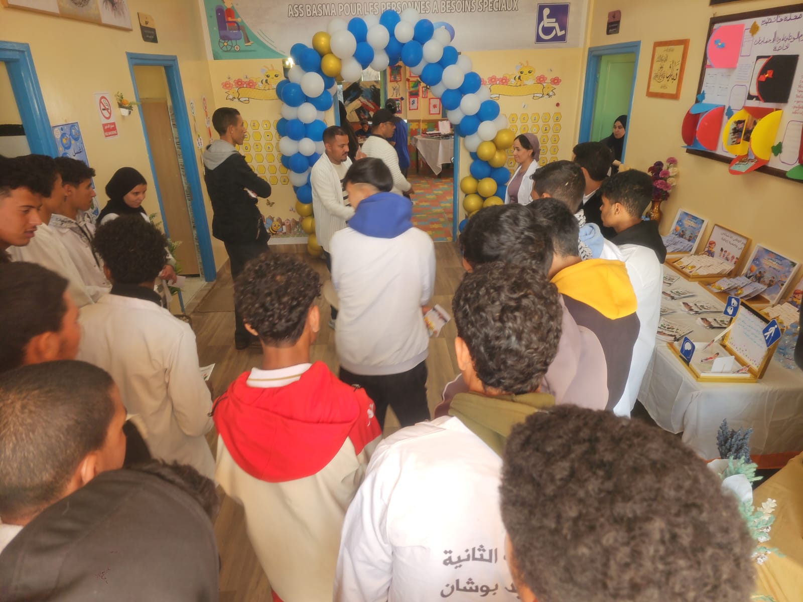 في إطار أنشطة دعم التفتح لدى مستفيدي دار الطالب بوشان ، الذي تشرف عليه جمعية بوصلة بشراكة مع المبادرة الوطنية للتنمية البشرية والجمعية الخيرية الاسلامية لدار الطالب بوشان ،وفي إطار الانفتاح على المحيط الاجتماعي وتعزيز الوعي لدى الناشئة، شارك مستفيدو الفرصة التانية الجيل الجديد الذي باعتبارهم مستفيدين دار الطالب بوشان بتأطير من اعضاء النادي الثقافي يومه الخميس 09ابريل 2026، في النشاط التوعوي الذي نظمته جمعية بسمة لذوي الاحتياجات الخاصة بالمركز الاجتماعي بوشان