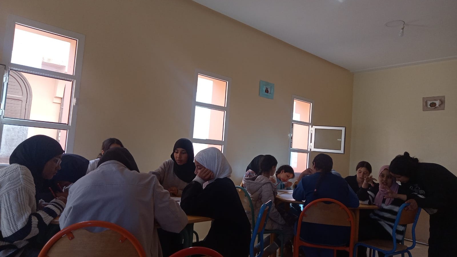 في إطار تنزيل أنشطة مشروع دعم التفتح لدى الشباب بدار الطالب والطالبة ابن جرير، وتحت إشراف اللجنة الإقليمية للتنمية البشرية بإقليم الرحامنة، وبشراكة مع جمعية بوصلة للثقافة والتواصل، يستمر برنامج دعم التفتح الفني من خلال تنظيم ورشة "صمم لافتتك". وقد عرفت الورشة أجواء من الحماس والبهجة، حيث عبر المستفيدون والمستفيدات عن سعادة غامرة بتعلم تقنيات التصميم واختيار الألوان واستخدام الصباغة في قوالب فنية مبتكرة. وبفضل المجهودات الجبارة التي بذلها المشاركون، تمكنوا من تحويل أفكارهم إلى واقع ملموس يعكس ذوقهم الفني الراقي، مما ساهم في إبراز مواهبهم الكامنة وتكريس قيم الصبر والدقة والإبداع_1776110146.jpeg)