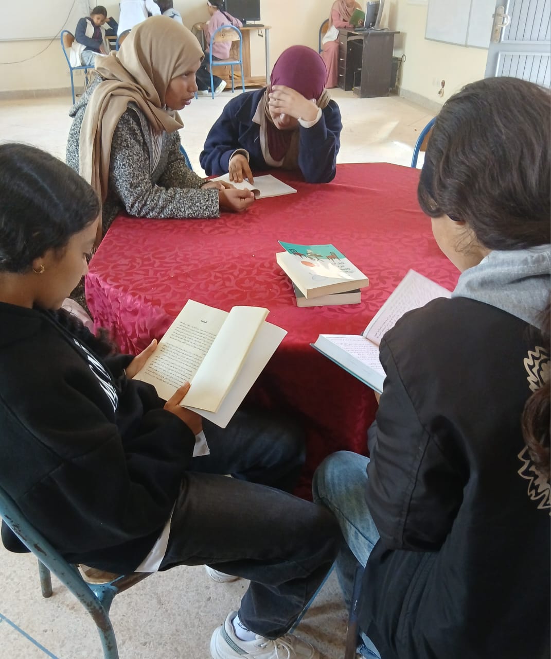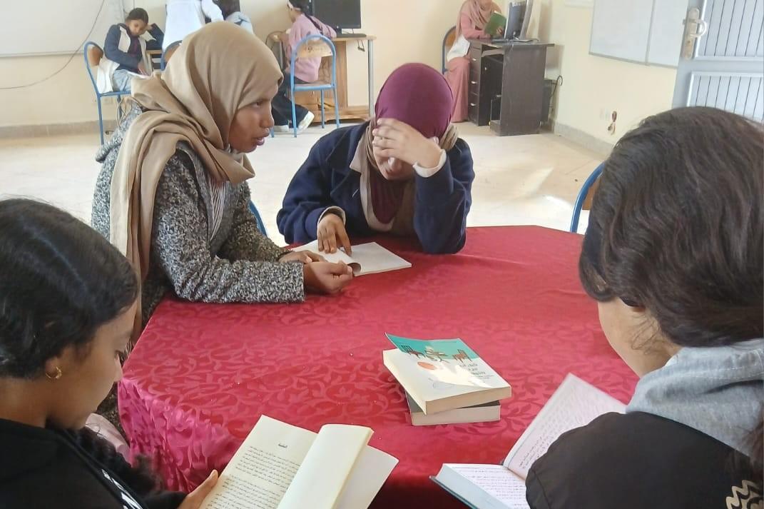 في إطار مواصلة تنزيل أنشطة مشروع دعم التفتح لدى مستفيدات دار الطالبة أولاد حسون حمري، وبشراكة مع جمعية بوصلة للثقافة والتواصل، وتحت إشراف اللجنة المحلية للتنمية البشرية بعمالة إقليم الرحامنة، تم تنظيم الحصة السادسة من ورشة القراءة. وقد عرفت هذه الحصة اعتماد أسلوبي القراءة الفردية والثنائية، حيث قامت المستفيدات باختيار كتب وروايات متنوعة حسب ميولهن واهتماماتهن. وتمكنت بعضهن من إتمام قراءة رواياتهن، في حين اكتفت أخريات بالاطلاع على فصول وصفحات من كتب مختلفة، في تجربة غنية عززت ارتباطهن بعالم القراءة. وقد ساهمت هذه الورشة في تنمية حب المطالعة لدى المستفيدات، وزيادة حماسهن لاكتشاف عوالم جديدة، كما مكنتهن من تطوير مهارات الفهم والاستيعاب، وتعزيز الرصيد اللغوي، إضافة إلى تنمية قدرات التفكير النقدي وفهم الذات.