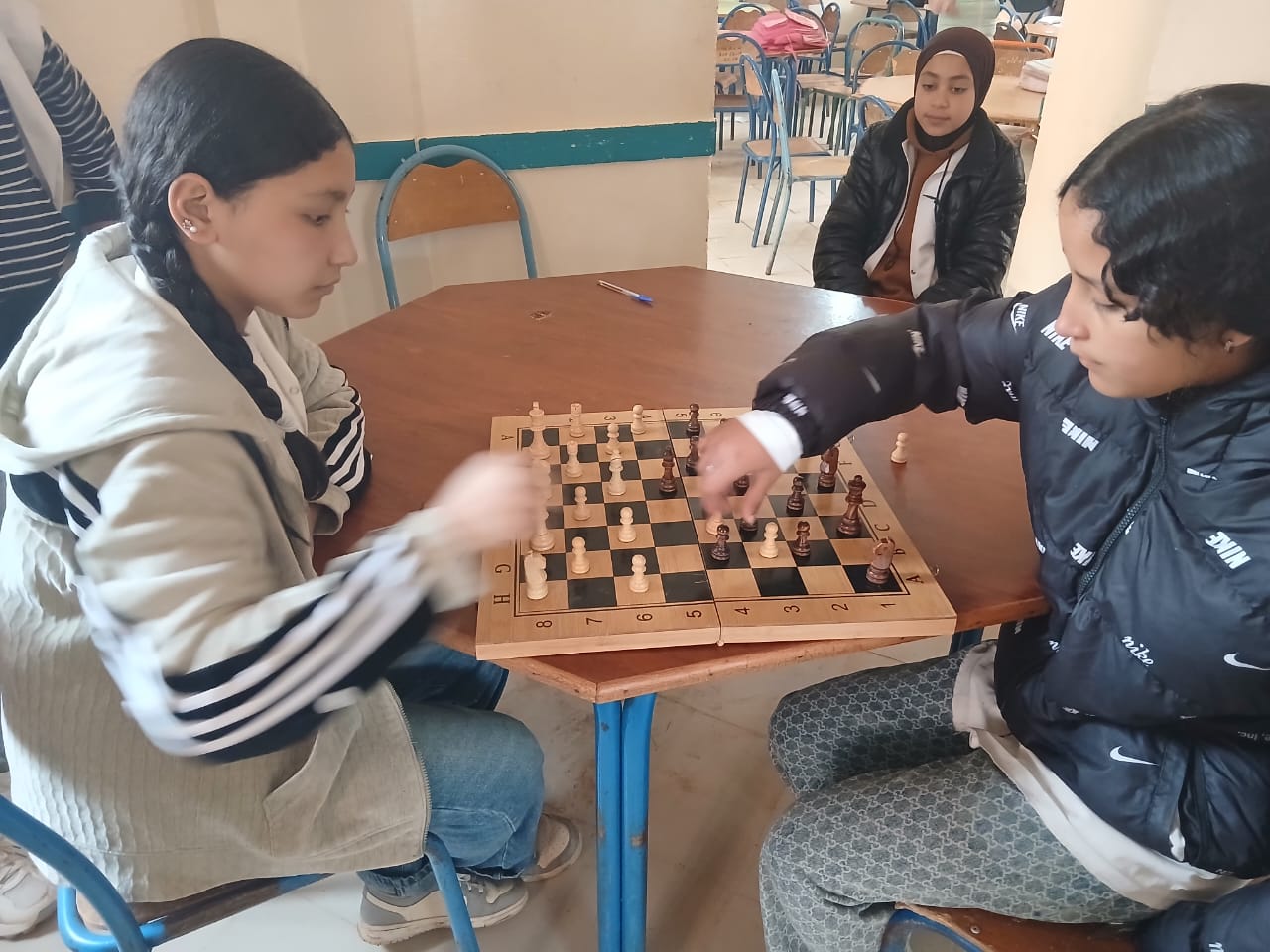في إطار تنزيل أنشطة مشروع دعم التفتح لدى الشباب بدار الطالبة أولاد حسون، وتحت إشراف اللجنة الإقليمية للتنمية البشرية، وبشراكة مع جمعية بوصلة للثقافة والتواصل، نظم النادي الرياضي ورشة إبداعية متميزة في لعبة الشطرنج، أشرفت عليها المؤطرة سلمى الإدريسي. وتهدف هذه الورشة إلى تعزيز المهارات الذهنية والفكرية لدى المستفيدات، من خلال تدريبهن على تقنيات وقواعد هذه اللعبة التي تنمي التركيز، والتخطيط، واتخاذ القرار. وقد عرفت الورشة مشاركة مكثفة وتفاعلاً إيجابياً من طرف المستفيدات. كما مرت أطوار الورشة في أجواء حيوية طبعها الحماس وروح التعاون، مما ساهم في خلق بيئة تربوية محفزة على التعلم والاكتساب._1776117559.jpeg)