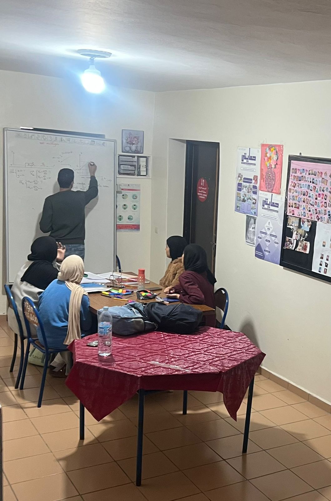 وفي إطار مواصلة برنامج الدعم التربوي، وبتأطير من المبادرة الوطنية للتنمية البشرية وبشراكة مع جمعية بوصلة للثقافة والتواصل، تم تنظيم حصص دعم منتظمة في مادة الرياضيات لفائدة تلميذات المستوى الثالثة إعدادي، وذلك بهدف تعزيز المكتسبات الأساسية وتثبيت التعلمات، وتمكين المستفيدات من تجاوز الصعوبات التي تعترضهن خلال الفهم والاستيعاب. وقد تميزت هذه الحصص بالاستمرارية والانتظام، حيث شملت مختلف محاور المقرر الدراسي، مع التركيز على الجوانب التطبيقية والتمارين المشابهة لنماذج الامتحانات الإشهادية. كما تم اعتماد منهجية بيداغوجية تراعي الفروق الفردية بين التلميذات، من خلال الشرح المبسط، والعمل الجماعي، والتقويم المستمر. وقد ساهم هذا البرنامج بشكل ملموس في تحسين مستوى التحصيل الدراسي لدى المستفيدات، حيث أظهرن تطوراً واضحاً في فهم الدروس والقدرة على حل التمارين بثقة أكبر. كما انعكس ذلك إيجابياً على استعدادهن النفسي والمنهجي لاجتياز الفروض والاختبارات. وفي هذا السياق، لعبت حصص الدعم دوراً محورياً في تمكين التلميذات من الاستعداد الجيد للامتحانات الإشهادية المبرمجة في نهاية السنة الدراسية، من خلال تقوية مهاراتهن في معالجة الوضعيات التقويمية، والتدرب على منهجية الإجابة النموذجية، وتدبير الوقت أثناء الإنجاز. وبناءً عليه، يمكن التأكيد على أن استمرار هذه الحصص كان له أثر إيجابي في الرفع من مستوى التلميذات، وتحسين فرص نجاحهن في الامتحانات، وتحقيق نتائج دراسية أفضل
