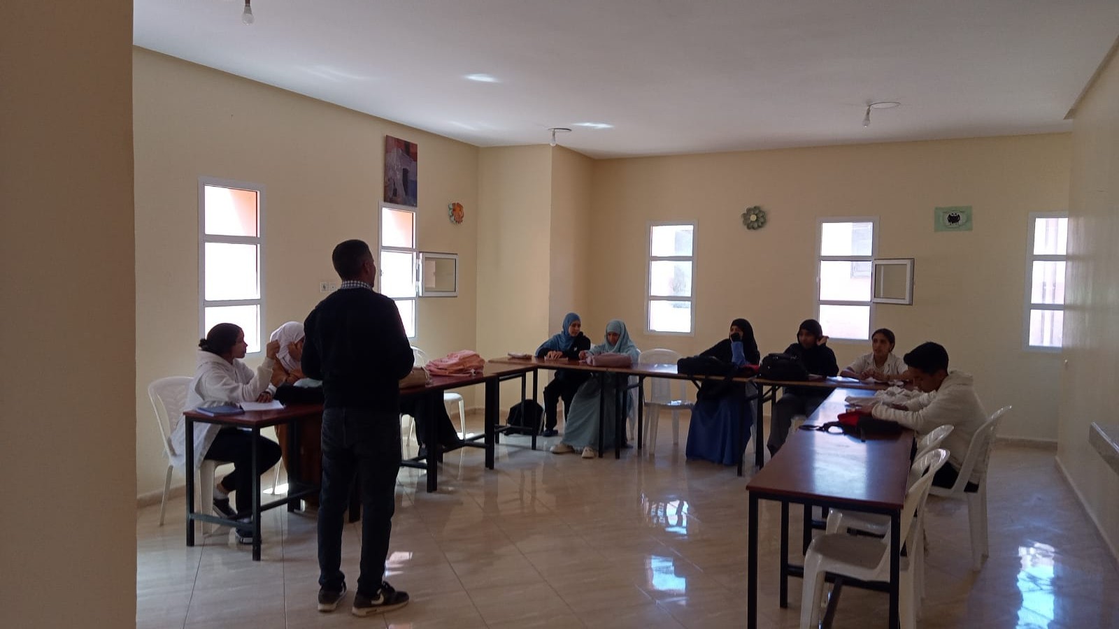 في إطار تنزيل أنشطة مشروع دعم التفتح لدى الشباب بدار الطالب والطالبة ابن جرير، وتحت إشراف اللجنة الإقليمية للتنمية البشرية بإقليم الرحامنة وبشراكة مع جمعية بوصلة للثقافة والتواصل، تستمر دروس الدعم التربوي بنجاح؛ حيث شهدت المؤسسة إجراء الحصة الثانية في مادة الرياضيات لفائدة تلميذات وتلاميذ المستوى الثالثة إعدادي. وقد ركزت هذه الحصة على تبسيط المفاهيم الرياضية الأساسية ومعالجة التعثرات لدى المتعلمين، وسط أجواء مطبوعة بالتركيز والتفاعل الإيجابي، سعياً لتعزيز مهاراتهم الأكاديمية وتحضيرهم الأمثل للامتحانات المقبلة