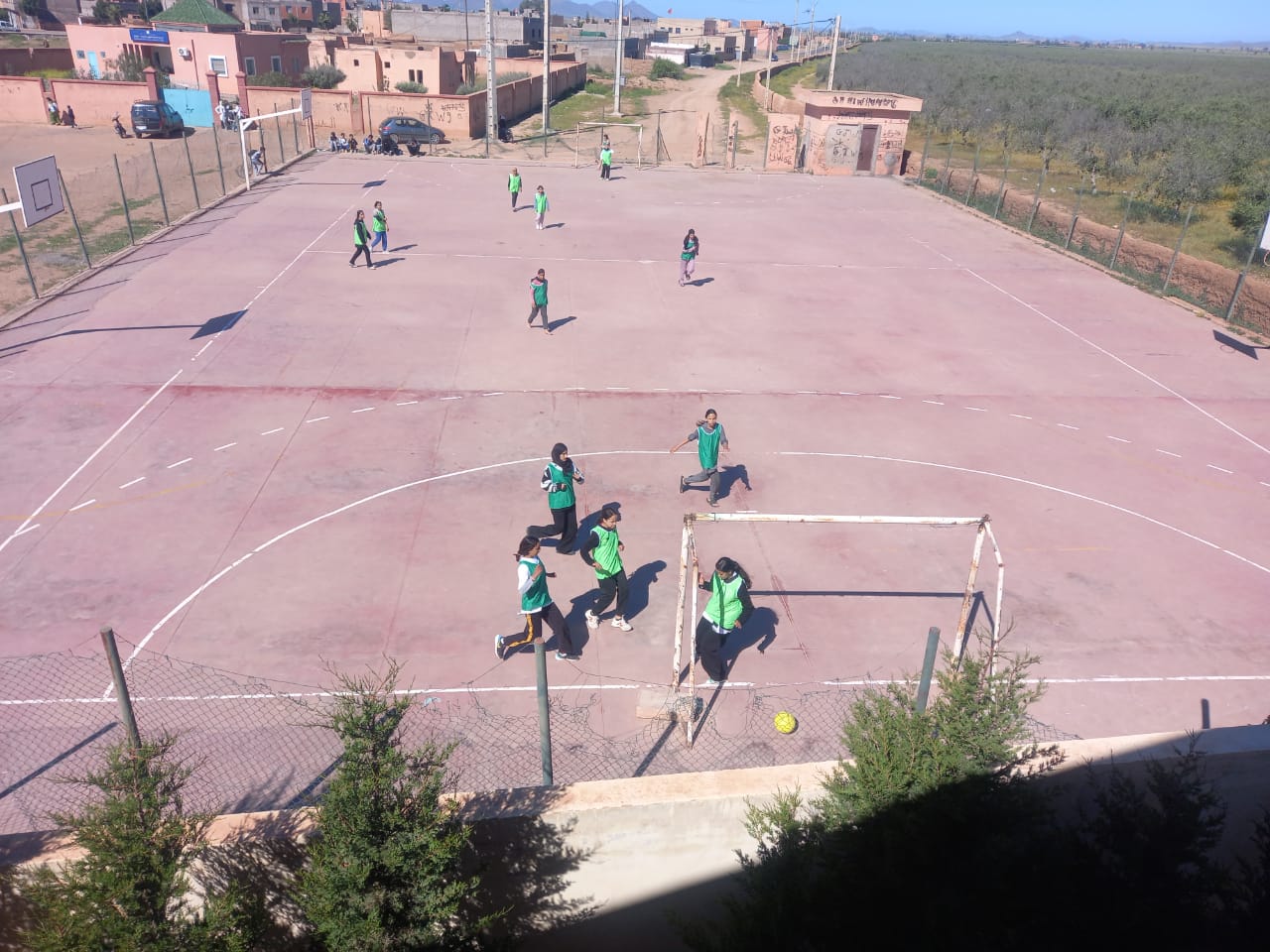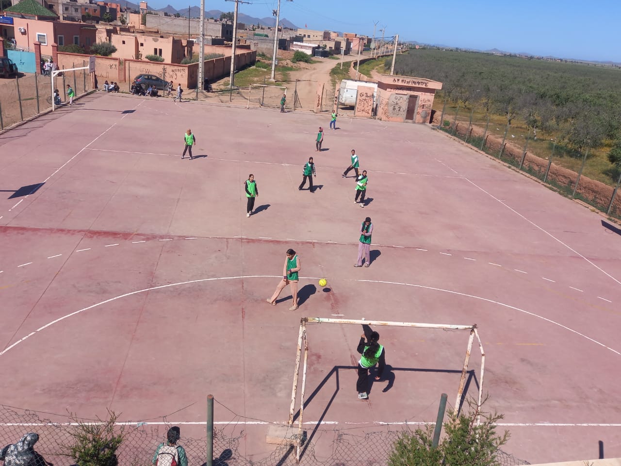 في إطار تنزيل أنشطة مشروع دعم التفتح لدى الشباب بدار الطالبة الطلوح، وتحت إشراف اللجنة الإقليمية للتنمية البشرية بإقليم الرحامنة، يواصل النادي الرياضي تنظيم الدوري الداخلي في كرة القدم لفائدة فتيات الدار. يأتي هذا الدوري ضمن برنامج النادي الرياضي المنتظم، حيث تشارك مجموعة من الفتيات في منافسات رياضية أسبوعية تتميز بالحماس والروح التنافسية الإيجابية. ويهدف الدوري إلى تعزيز اللياقة البدنية، تطوير المهارات الكروية، وترسيخ قيم العمل الجماعي والروح الرياضية لدى الفتيات. انطلقت المباريات في أجواء مفعمة بالحماس والتشجيع المتبادل، حيث أظهرت الفتيات مستوى جيداً من التحكم في الكرة، التمريرات الدقيقة، والتنسيق الجماعي داخل الفرق. كما شهدت المباريات روحاً رياضية عالية قائمة على الاحترام والمنافسة الشريفة. يُعد استمرار هذا الدوري فرصة قيمة للفتيات لممارسة الرياضة بانتظام، واكتساب عادات صحية إيجابية، بالإضافة إلى تقوية الروابط الاجتماعية فيما بينهن داخل فضاء الدار. وتستمر فعاليات الدوري الداخلي في كرة القدم للفتيات بشكل أسبوعي، مع تزايد الحماس والمشاركة في كل جولة جديدة._1776338840.jpeg)