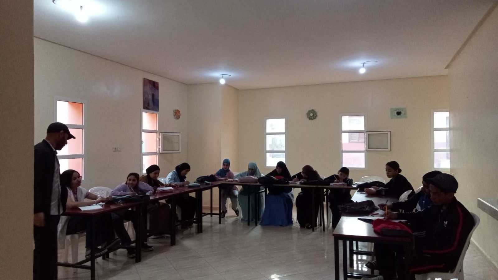 في إطار تنزيل أنشطة مشروع دعم التفتح لدى الشباب بدار الطالب والطالبة ابن جرير، وتحت إشراف اللجنة الإقليمية للتنمية البشرية بإقليم الرحامنة وبشراكة مع جمعية بوصلة للثقافة والتواصل، تستمر دروس الدعم التربوي بنجاح؛ حيث شهدت المؤسسة إجراء حصة في مادة اللغة الفرنسية لفائدة تلميذات وتلاميذ المستوى الثالثة إعدادي. وقد ركزت هذه الحصة على تمكين المستفيدين والمستفيدات من آليات التواصل اللغوي وضبط القواعد الأساسية مع التدريب على مهارات الفهم والكتابة، وذلك في جو من التفاعل والحيوية، بهدف تجاوز الصعوبات اللغوية والارتقاء بمستواهم التواصلي استعداداً للاستحقاقات التقويمية القادمة._1776366441.jpeg)
