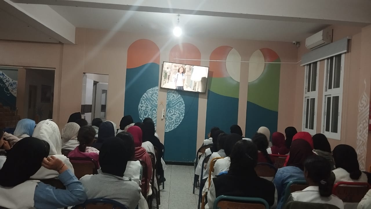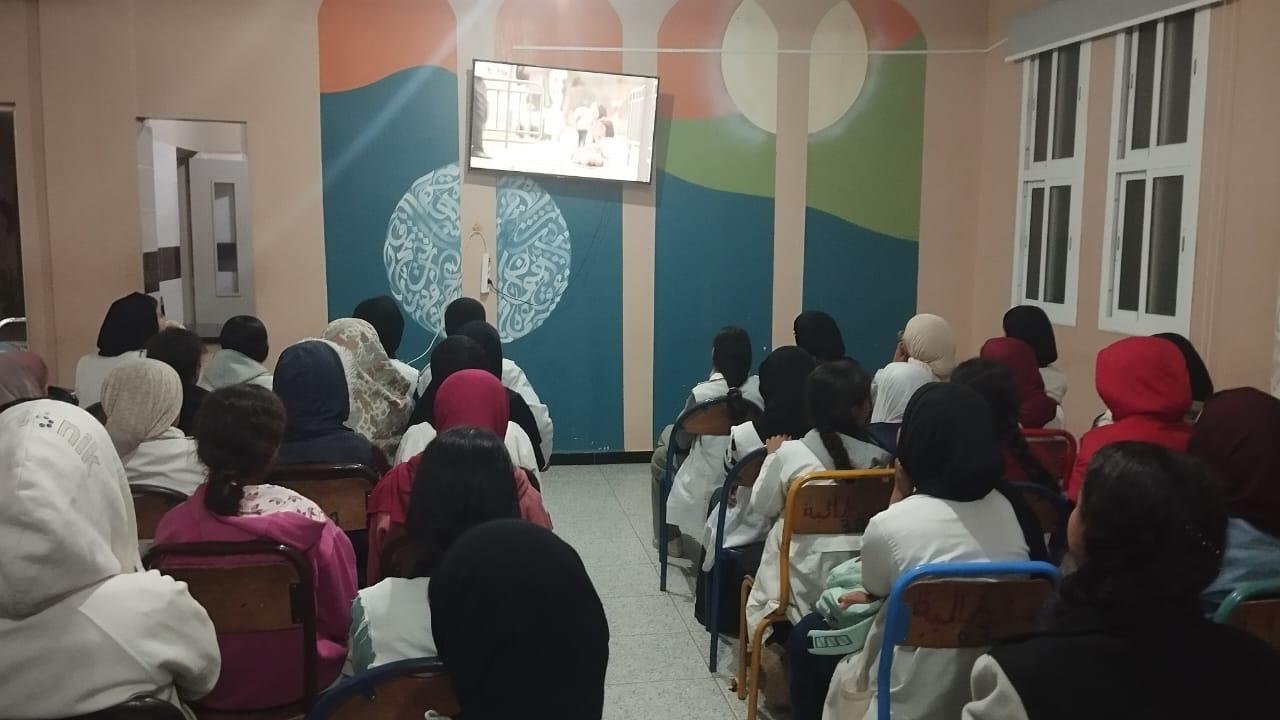 في إطار تنزيل برنامج دعم التفتح لدى الشباب الذي تشرف عليه المبادرة الوطنية للتنمية البشرية بإقليم الرحامنة وبشراكة مع جمعية بوصلة للثقافة والتواصل تم بدار الطالبة بوشان بتاريخ 15 أبريل 2026 عرض فيلم قصير بعنوان القيمة الإنسانية والعطاء في أمسية عائلية بين المستفيدات وأطر المؤسسة حيث كان الهدف من عرض الفيلم توعية المستفيدات بأهمية التحلي ببعض الصفات الحميدة ومنها ما تناوله موضوع الفيلم القصير وهو قيمة العطاء حيث تعتبر معيارا من معايير قياس الإنسانية وحب الخير والتعاون ونشر هذه القيمة بين مستفيدات دار الطالبة يخلق جوا من الألفة والمحبة بين الجميع ويساعد على تنشئة سليمة تخدم المجتع، وقد خصصت فقرة بعد نهاية الفيلم لمناقشته بين المستفيدات وإعطائهن فرصة التحليل وإبداء رأيهن في أحداث الفيلم.