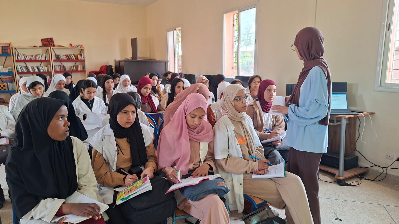 في إطار مشروع دعم التفتح لدى الشباب بدار الطالب والطالبة صخور الرحامنة، وتحت إشراف اللجنة الإقليمية للتنمية البشرية بإقليم الرحامنة، وبشراكة مع جمعية بوصلة للأعمال الاجتماعية بابن جرير .