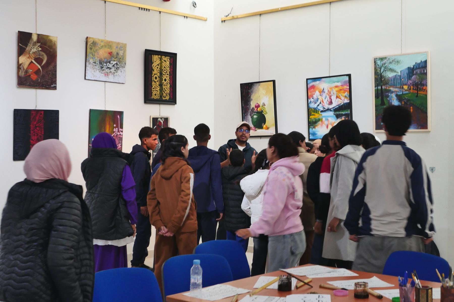 تلاميذ وتلميذات دار الطالب والطالبة ابن جرير في زيارة فنية لرواق المعرض الوطني “بصمات حروفية“