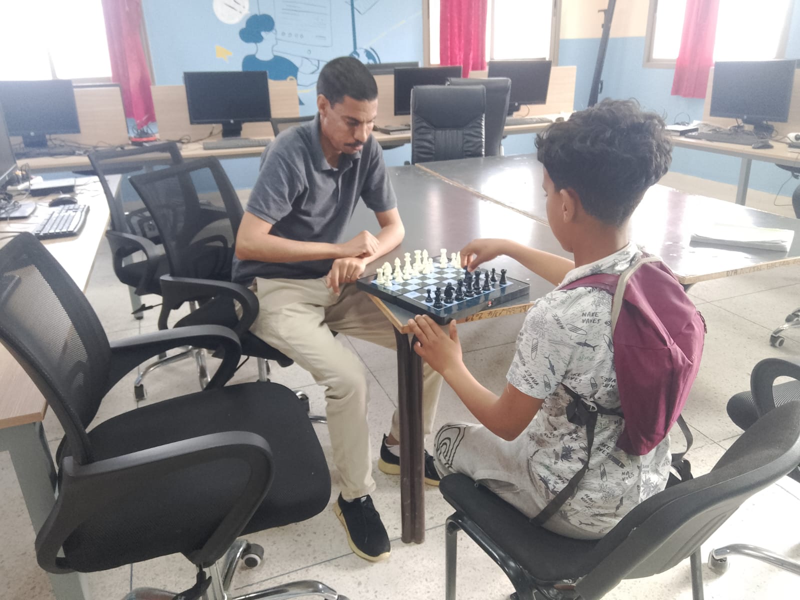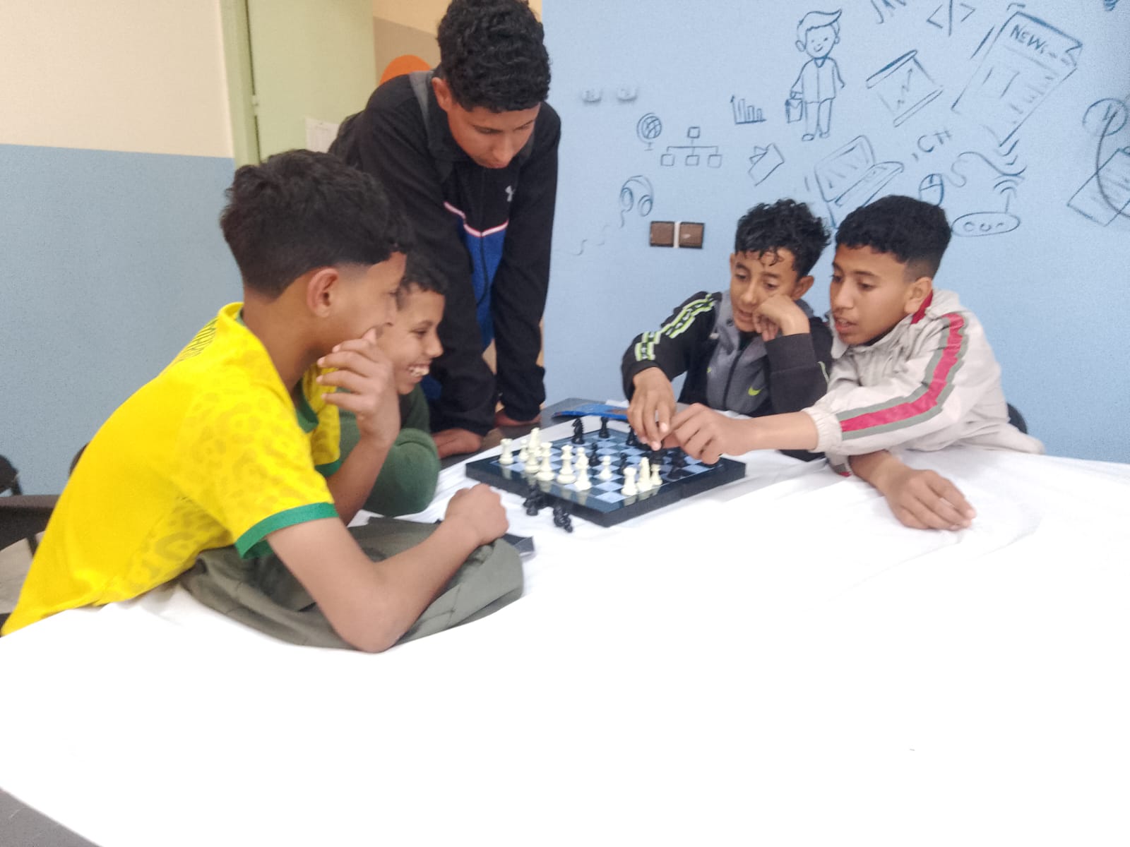 في إطار تنزيل أنشطة مشروع دعم التفتح لدى الشباب بدار الطالب والطالبة انزالت لعظم، وتحت إشراف اللجنة الإقليمية للتنمية البشرية بإقليم الرحامنة، وبشراكة مع جمعية بوصلة للثقافة والتواصل، وفي إطار تفعيل الأنشطة التربوية والترفيهية الهادفة بدار الطالب والطالبة انزالت لعظم، وتماشياً مع أهداف التعاون الوطني الرامية إلى تنمية القدرات الذهنية للمستفيدين، تم تنظيم ورشات تكوينية في أساسيات لعبة الشطرنج خلال الفترة الممتدة من 01 مارس إلى 20 أبريل 2026, عتمدت الورشة على المقاربة التشاركية: 30% شرح نظري + 70% تطبيق عملي. تم تقسيم التلاميذ إلى ثنائيات مع تغيير الشريك كل حصة لضمان الاحتكاك بمستويات مختلفة. . شكلت ورشة الشطرنج بدار الطالب والطالبة انزالت لعظم تجربة ناجحة بكل المقاييس. فقد تجاوزت كونها لعبة ترفيهية لتتحول إلى أداة بيداغوجية فعالة لتنمية الذكاء والانضباط. المستفيدون اليوم لا يحركون القطع فقط، بل يتعلمون كيف يخططون داخل الرقعة نقلة بعد نقلة.