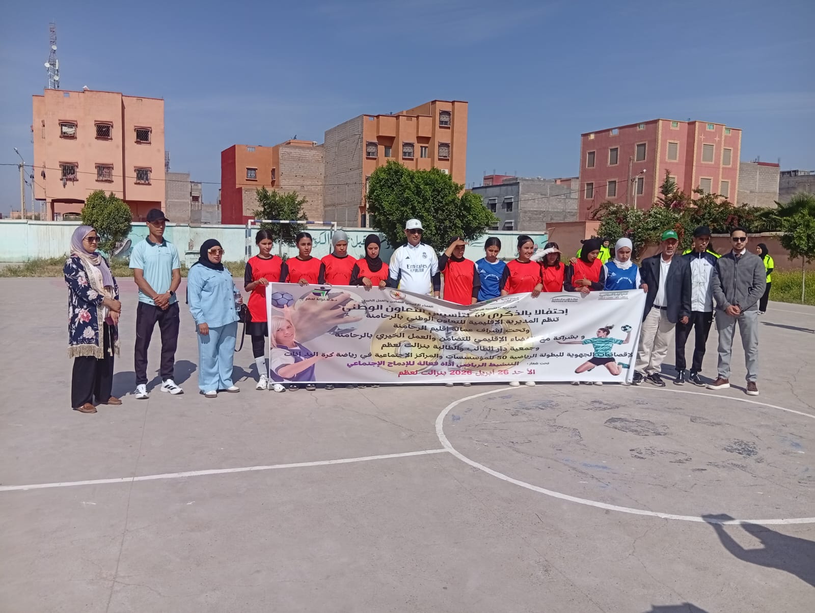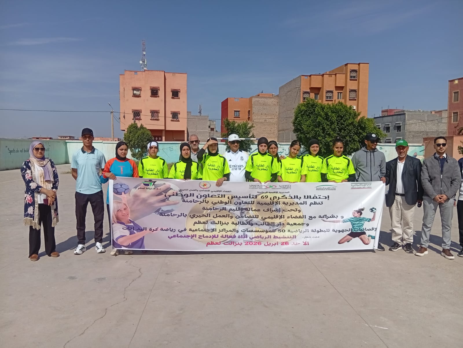 في إطار فعاليات الدورة 50 للألعاب الرياضية للتعاون الوطني، المنظمة بمناسبة الذكرى 69 لتأسيس التعاون الوطني تحت شعار "الرياضة رافعة للإدماج الاجتماعي"، احتضن ملعب المركب الثربوي المندمج يوم 26ابريل 2026 بداية المقابلات الإقصائية في صنف كرة اليد إناث، والتي جمعت بين فريق دار الطالبة العطاوية وفريق دار الطالبة تزارت عن إقليم الحوز. . أجواء الاستقبال والافتتاح 1. التوقيت: وصل وفد دار الطالبة العطاوية على الساعة 08:00 صباحاً، وكان في استقباله وفد دار الطالبة تزارت وأطر دار الطالب والطالبة انزالت لعظم المنظمة. 2. مراسيم الافتتاح: انطلقت المقابلة على الساعة 10:00 صباحاً بعد عزف النشيد الوطني، وكلمة ترحيبية باسم اللجنة المنظمة أكدت على قيم الروح الرياضية والأخوة بين دور الطالبة. 3. الحضور الرسمي: عرفت المقابلة حضور السيد ممثل المديرية الإقليمية للتعاون الوطني، مديرتي المؤسستين، ممثل عن جماعة انزالت لعظم، وأطر تربوية، بالإضافة إلى اعضاء الجمعية المسيرة لدار الطالب و الطالبة انزالت لعظم و السلطة المحلية و بعض المستفيدين. اتسمت المقابلة بالحذر والندية بين الفريقين، مع محاولات لجس النبض. اعتمد فريق العطاوية على التمريرات القصيرة والانسلالات من الأطراف، بينما ركز فريق تزارت على التحصين الدفاعي والهجمات المرتدة السريعة و في الاخير المقابة انتصر فريق العطاوية على فريق تزارت بحصة 16 مقبل 2 وانتهت المقابلة في اجواء رياضية و تربوية مشرفة حيت ساد روج الود و الاخاء بين المشاركات