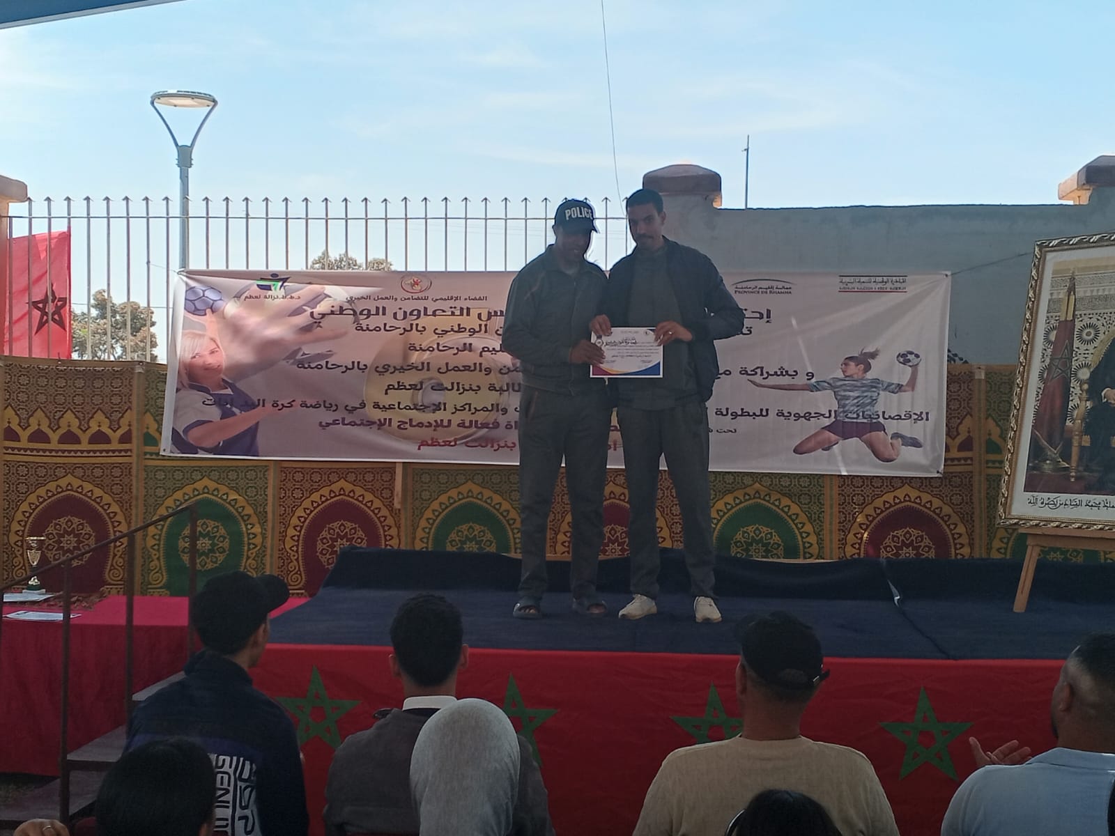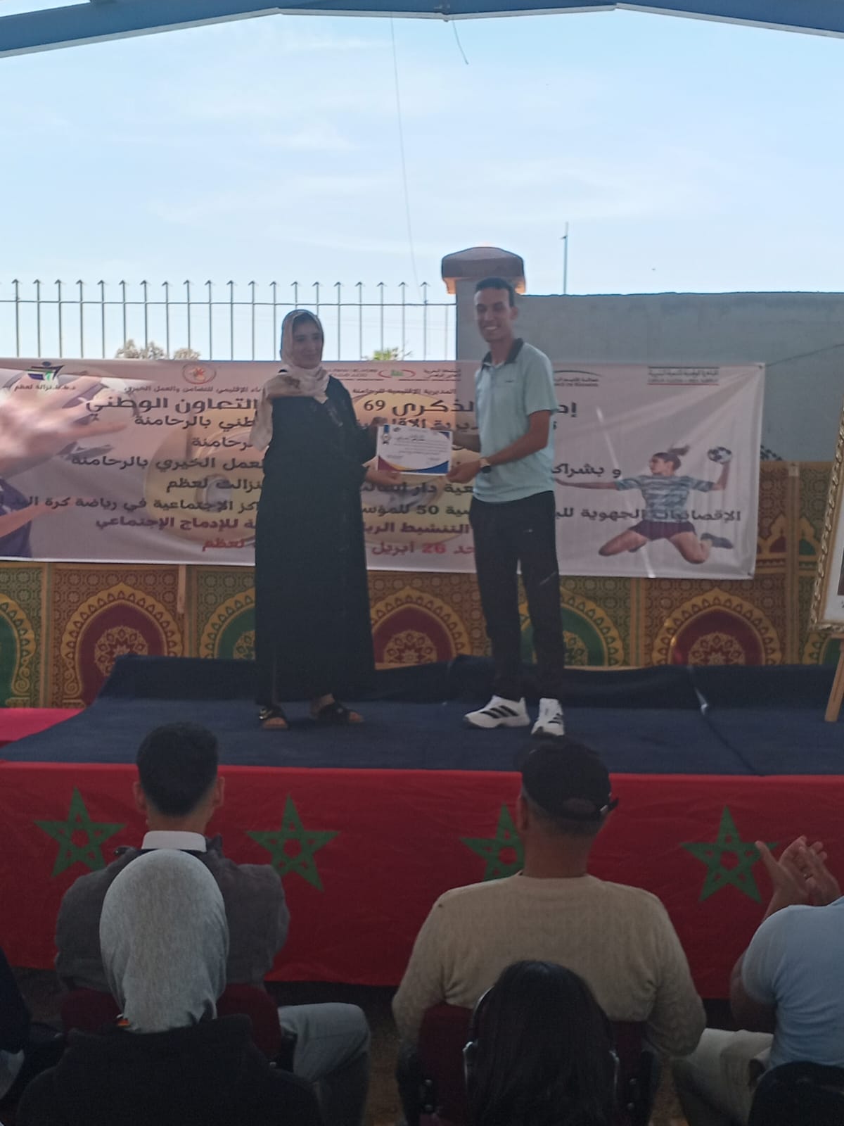 اختتاماً لفعاليات الدورة 50 للألعاب الرياضية للتعاون الوطني المنظمة تحت شعار "النشاط الرياضي رافعة للإدماج الاجتماعي"، وتخليداً للذكرى 69 لتأسيس التعاون الوطني، احتضنت دار الطالب والطالبة انزالت لعظم يوم الاحد 26 ابريل حفلاً بهيجاً لتتويج الفرق المشاركة في صنف كرة اليد انات و ذكور. اكد السيد النائب عن المدير الإقليمي للتعاون الوطني في كلمته الختامية أن "الفائز الحقيقي في هذه الدورة هو التعاون الوطني، والفائز الأكبر هو فتيات العالم القروي اللواتي أثبتن أنهن قادرات على رفع التحدي". كما نوه بالدور الكبير لدار الطالب والطالبة انزالت لعظم في إنجاح هذه التظاهرة تنظيمياً ولوجستيكياً وشكر من خلال هده الكلمة جميع الفعاليات المحلية كالفضاء الاقليمي بصفته الراعي الرسمي لجميع المنافاسات الاقليمة بالرحامنة و المركب التربوي المندمج كمحتضن لهده الانشطة الرياضية و السلطة المحلية الممتلة في القوات المساعدو الدرك الملكي و باقي جنود الخفاء من اعوان و مؤطري و اعضاء الجمعية المنظمة. لم يكن تتويج دار الطالبة العطاوية و دار الطالب و الطالبة انزالت لعظم بالمرتبة الأولى، ودار الطالبة تزارت بالمرتبة الثانية، مجرد ترتيب رقمي. كان تتويجاً لقيم التعاون والتضامن، تكافؤ الفرص، والإيمان بطاقات بنات المغرب العميق.