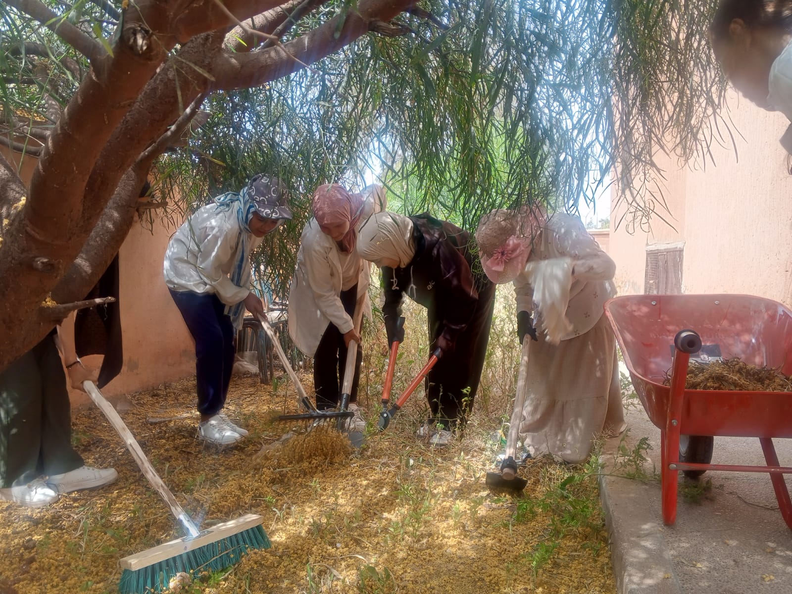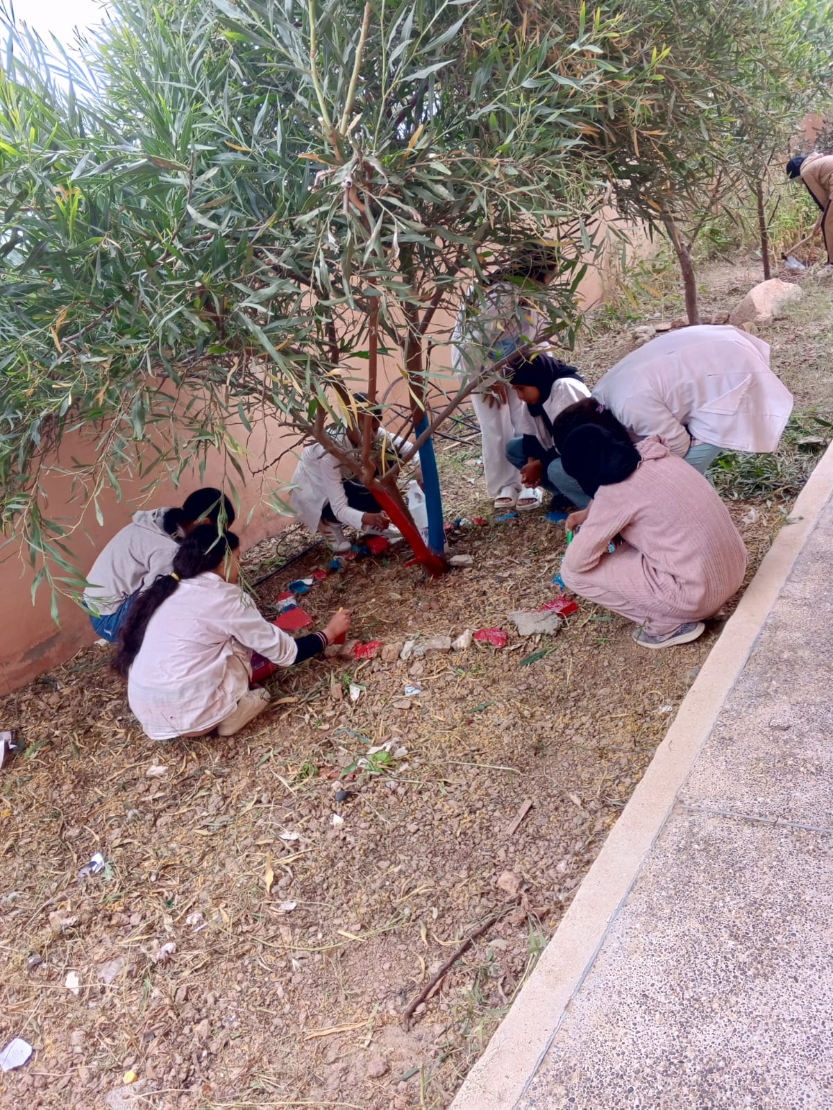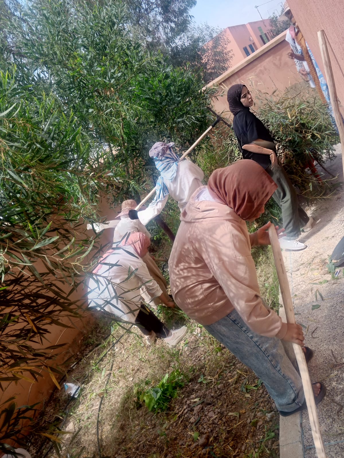 تفعيلا لمشروع دعم التفتح لدى الشباب بدار الطالب والطالبة البريكيين وتحت اشراف اللجنة الإقليمية للتنمية البشرية بإقليم الرحامنة وبشراكة مع جمعية بوصلة للثقافة والتواصل استهل النادي البيئي أولى حصصه بحملة تنظيف وتنقية محيط المؤسسة عبر إزالة الأعشاب الضارة وتقليم وتشذيب أشجار الحديقة والملعب التابعين للمؤسسة. وفي حصة تانية بعد عملية التنقية والتنظيف باشرت المستفيدات تزيين الحديقة بصباغة أغصان الأشجار والأحجار المحيطة بجذوعها بألوان مختلفة زادت من جماليتها عما كانت من قبل. أشرف على هذه العملية المؤطر مع مجموعة من مستفيدات المؤسسة وقد لقيت هذه المبادرة استحسانا من طرف المستفيدات حيث عبرن عن انخراطهن بكل فرح آملين في تكرار التجربة.