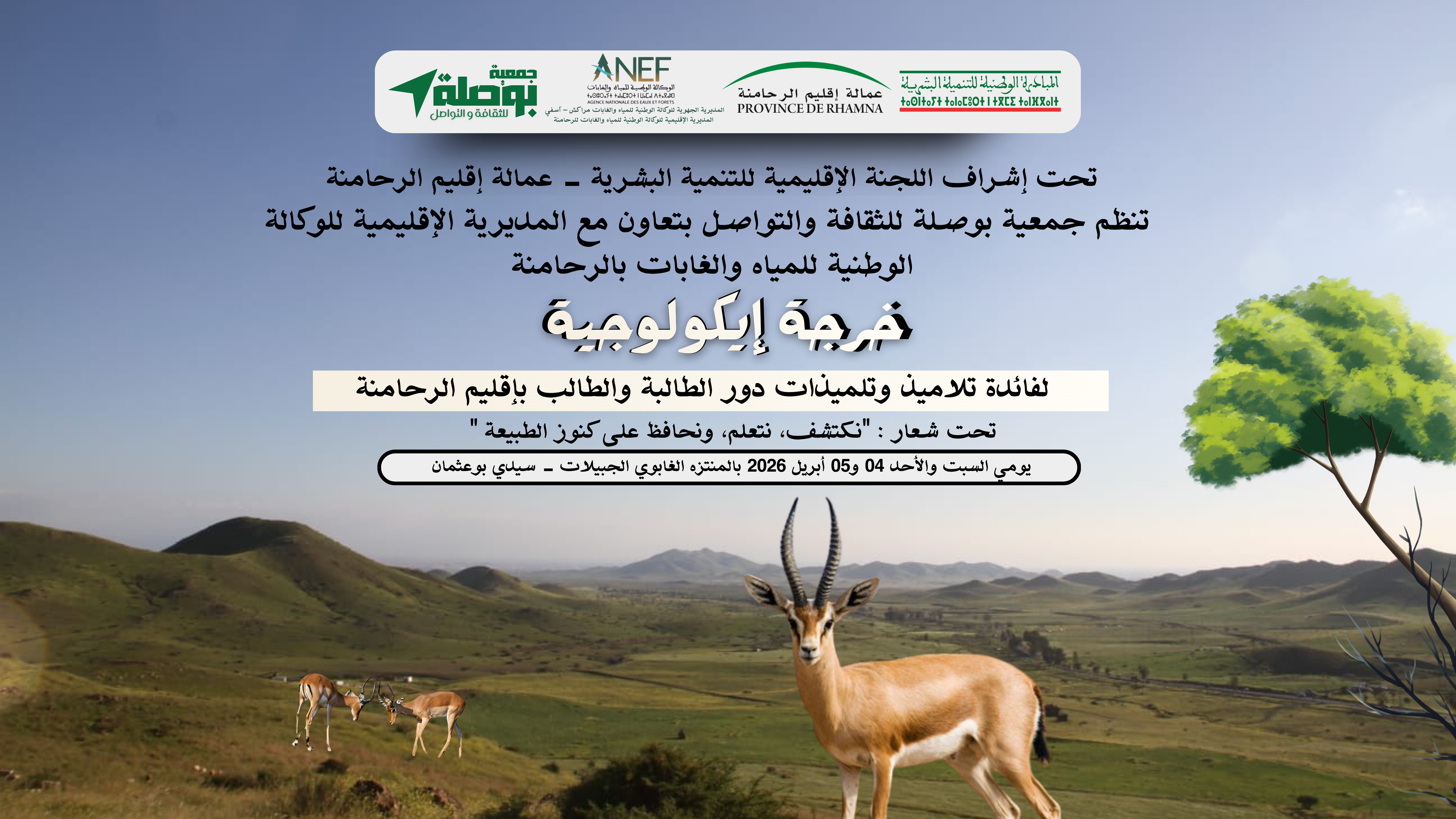 في إطار تنزيل مشروع النهوض بالخدمات التربوية والثقافية والرياضية بدور الطالبة والطالب بإقليم الرحامنة، وبتنظيم من فضاء الذاكرة التاريخية للمقاومة والتحرير بابن جرير وبتنسيق مع المندوبية الاقليمية للتعاون الوطني باقليم الرحامنة، ندعوكم لحضور ندوة فكرية تحت عنوان: "الزيارة التاريخية للمغفور له محمد الخامس إلى طنجة 09 أبريل 1947: دلالات وأبعاد" (تخليداً للذكرى 79 للأحداث الدامية بالدار البيضاء 7 أبريل 1947، والذكرى 79 للزيارة التاريخية لجلالة المغفور له محمد الخامس إلى طنجة، والذكرى 70 للزيارة الميمونة لجلالته لتطوان) 🗓 التاريخ: الجمعة 10 أبريل 2026 📍 المكان: دار الطالب والطالبة ابن جرير كونوا في الموعد للمشاركة والاستفادة! #تاريخ_المغرب #المقاومة #الرحامنة #الذاكرة_الوطنية.png)